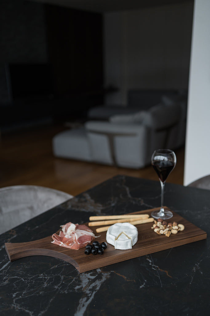 HUGO serving board is handmade by specialists and made out of 100% walnut wood.